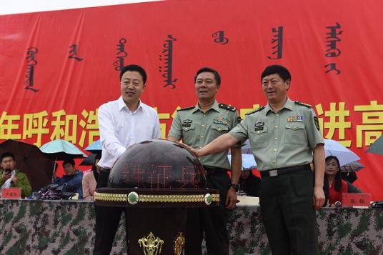 6月6日上午,2017年呼和浩特市征兵宣傳進(jìn)高校暨大學(xué)生征兵啟動(dòng)儀式在內(nèi)蒙古財(cái)經(jīng)大學(xué)玉龍廣場(chǎng)隆重舉行。內(nèi)蒙古軍區(qū)副司令員張英奎、副參謀長(zhǎng)許中林等,自治區(qū)黨委教育系統(tǒng)工委專職副書記、教育廳黨組成員張銳,呼和浩特警備區(qū)司令盧建永等,呼和浩特市民政局局長(zhǎng)張俊江等,內(nèi)蒙古大學(xué)黨委書記朱炳文,內(nèi)蒙古財(cái)經(jīng)大學(xué)校長(zhǎng)杜金柱、副校長(zhǎng)王立出席大會(huì)。呼和浩特警備區(qū)司令盧建永主持大會(huì)。教育廳學(xué)工處、駐呼各高校領(lǐng)導(dǎo),內(nèi)蒙古財(cái)經(jīng)大學(xué)相關(guān)部門負(fù)責(zé)同志、教師和學(xué)生代表900余人參加大會(huì)。?